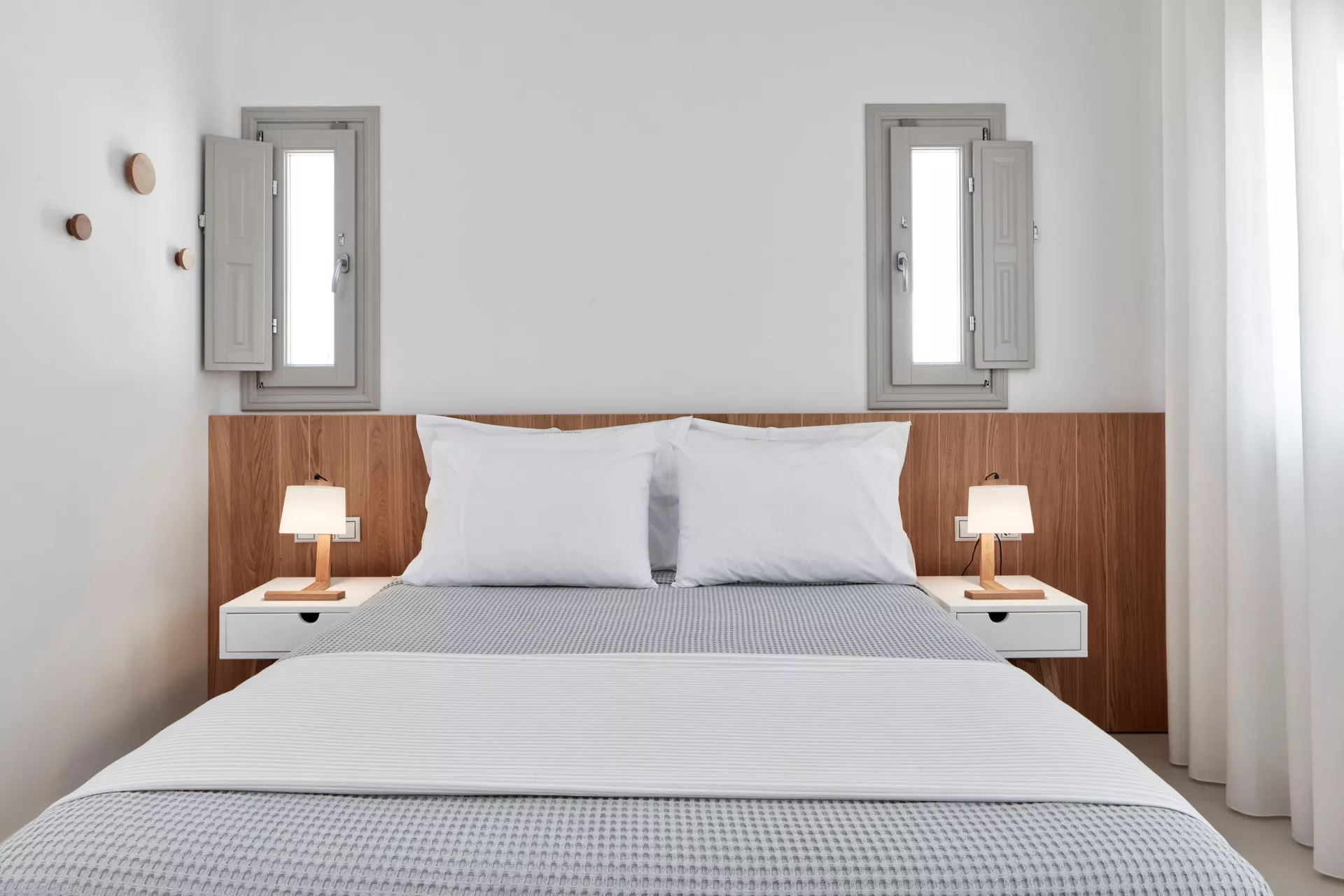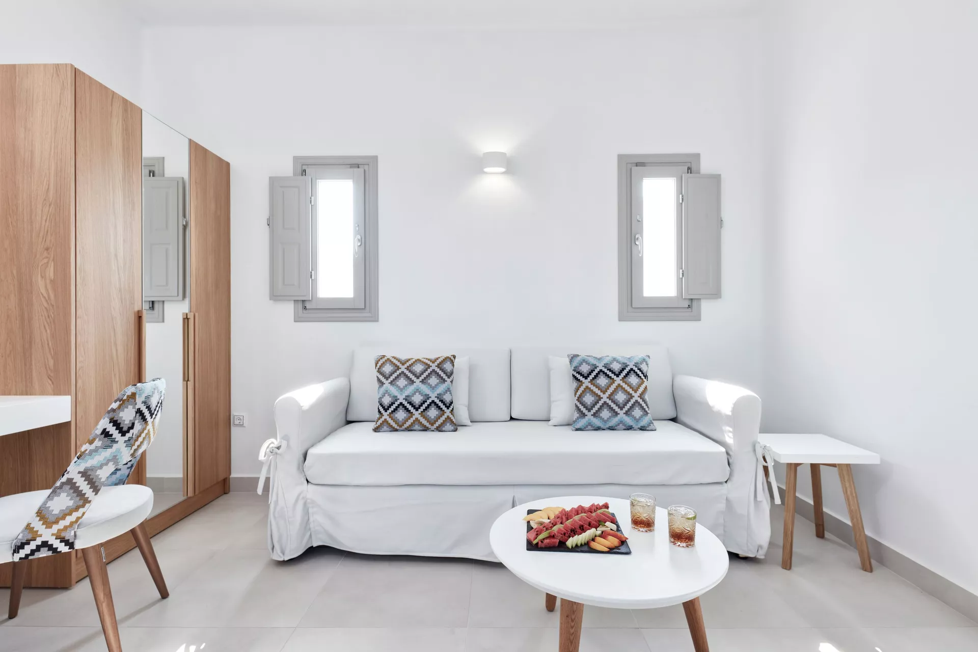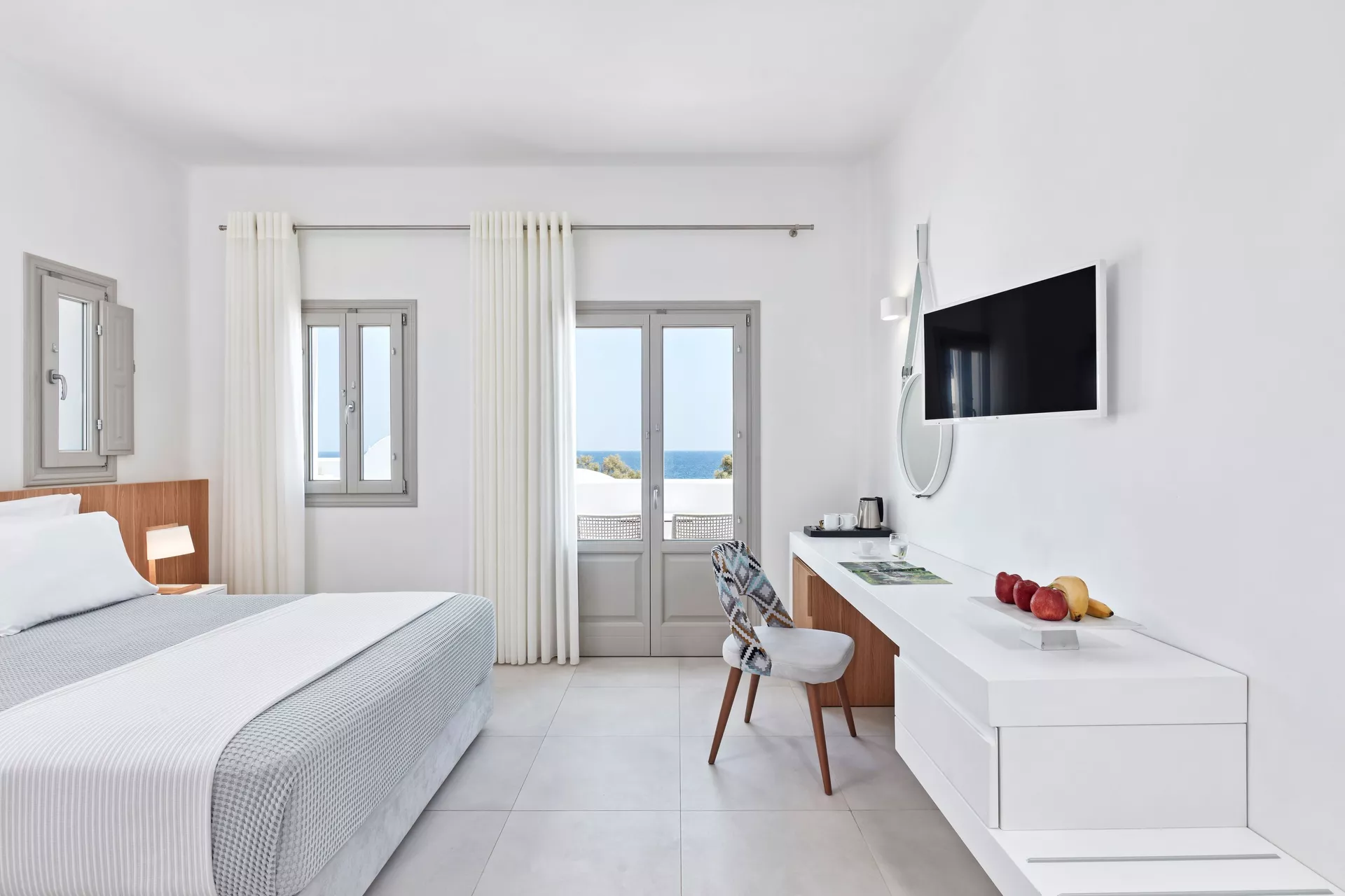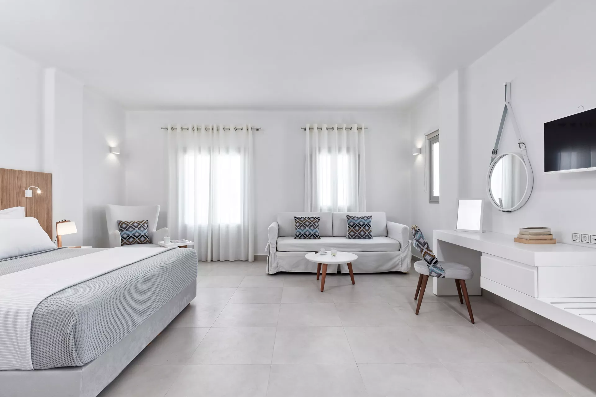One plan room with sea view, double bed and spacious living area, can accommodate up to 4