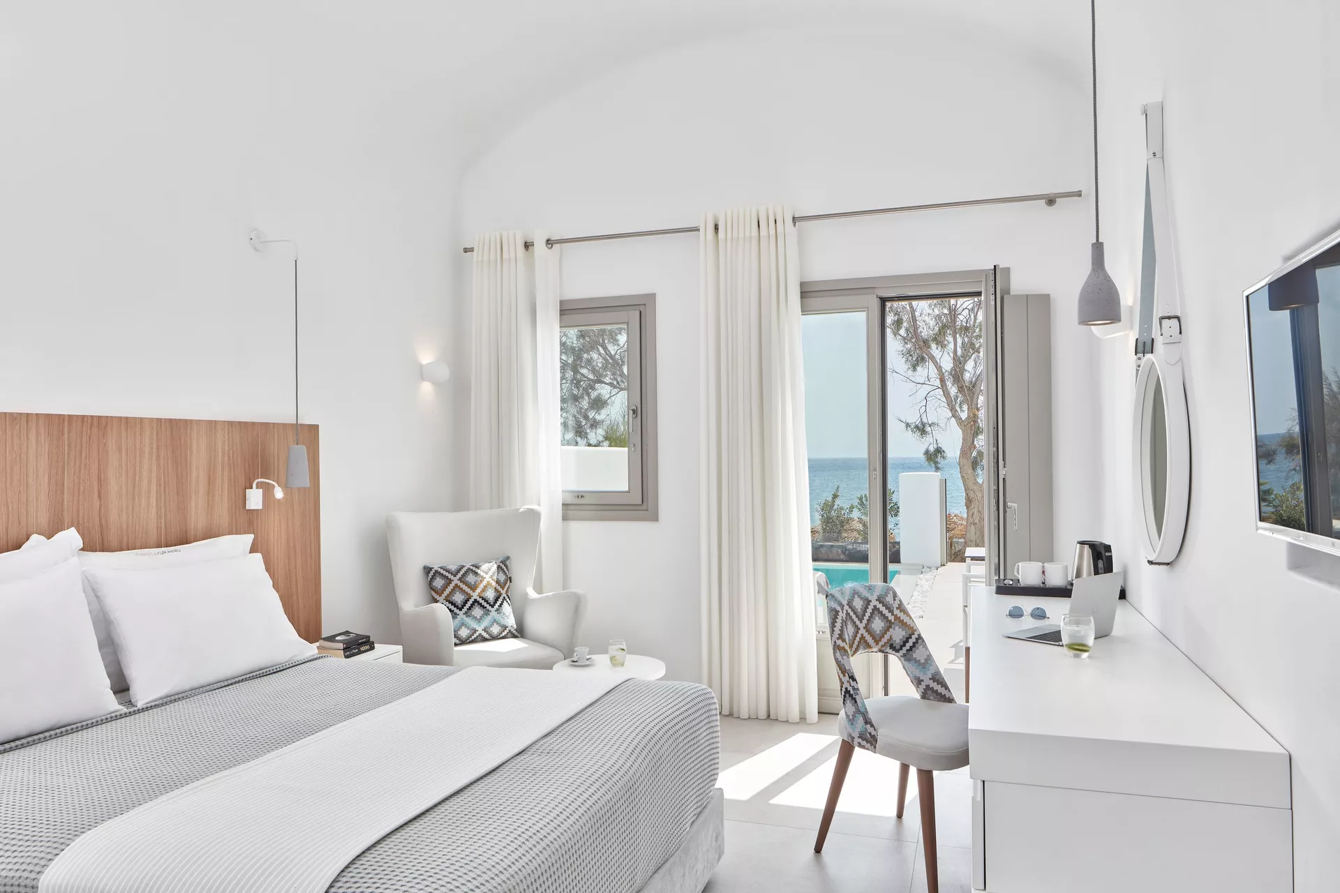 Perfectly located in the cosmopolitan black sandy beach of Kamari, offers you the ultimate feeling of barefoot luxury right on the beach.