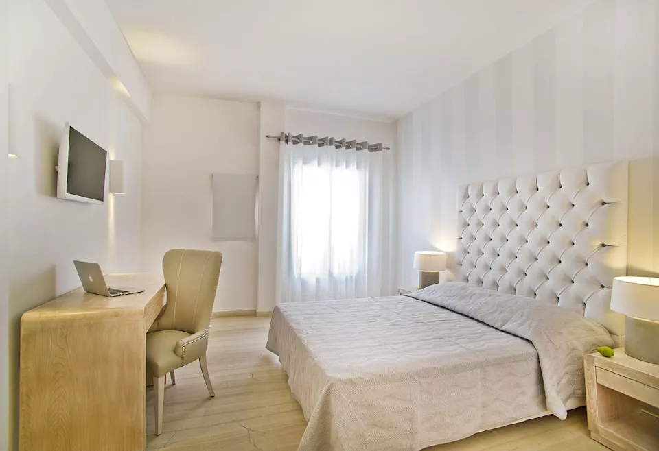 One double bed or two twin beds with air-conditioning (heat & cold), mini fridge, direct dial telephone, satellite-TV (No Greek channels available), private safety deposit box, hairdryer, bathtub or shower, balcony with view to the inner courtyard of the hotel.