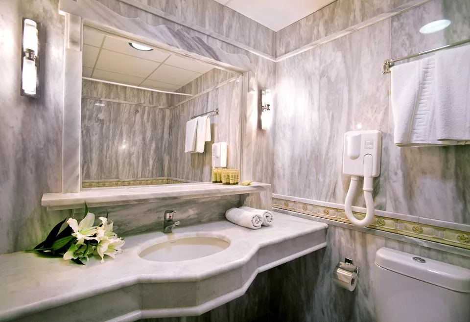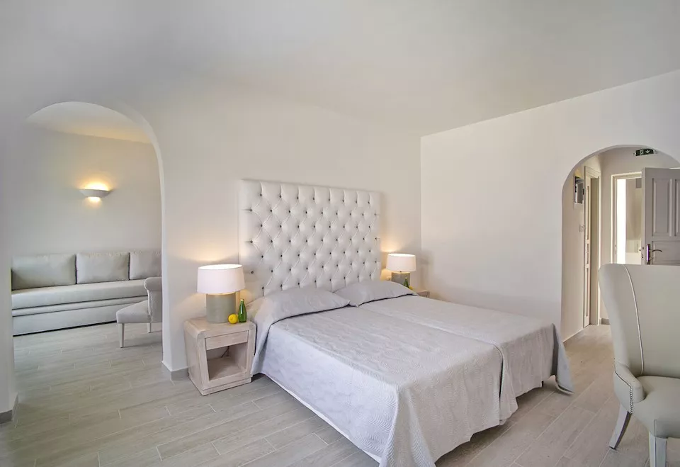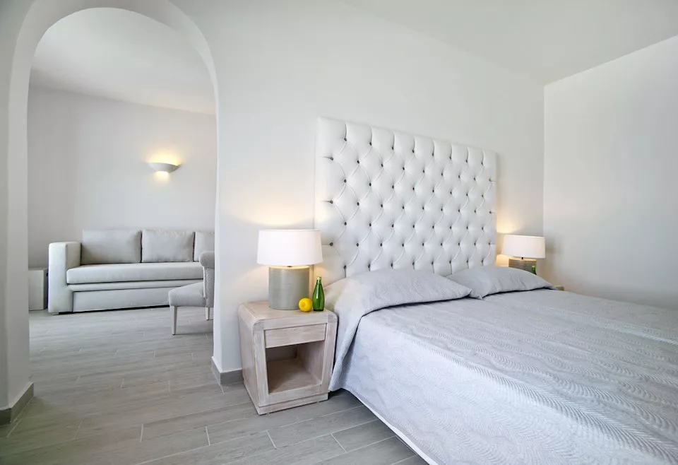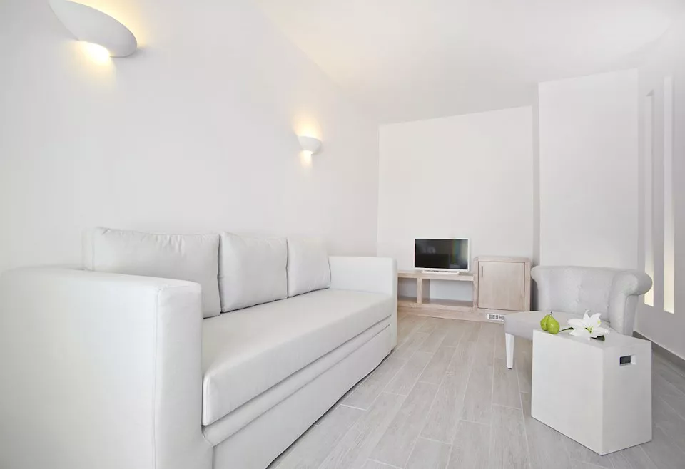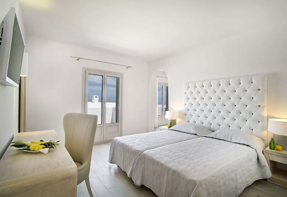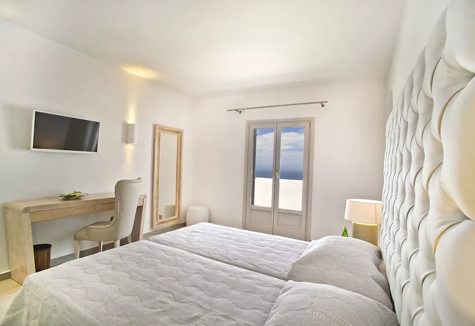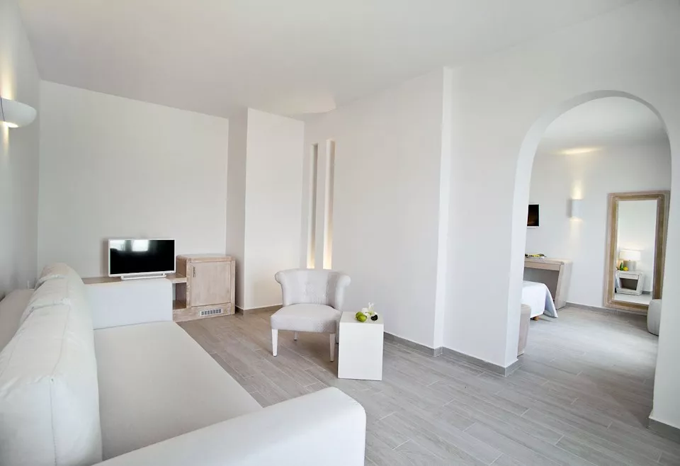 One or two double bedrooms, living room, dressing table, air-conditioning (heat & cold), mini fridge, direct dial telephone, satellite-TV (No Greek channels available), private safety deposit box, hairdryer, bathtub or shower and balcony with panoramic view of the eastern part of the island.