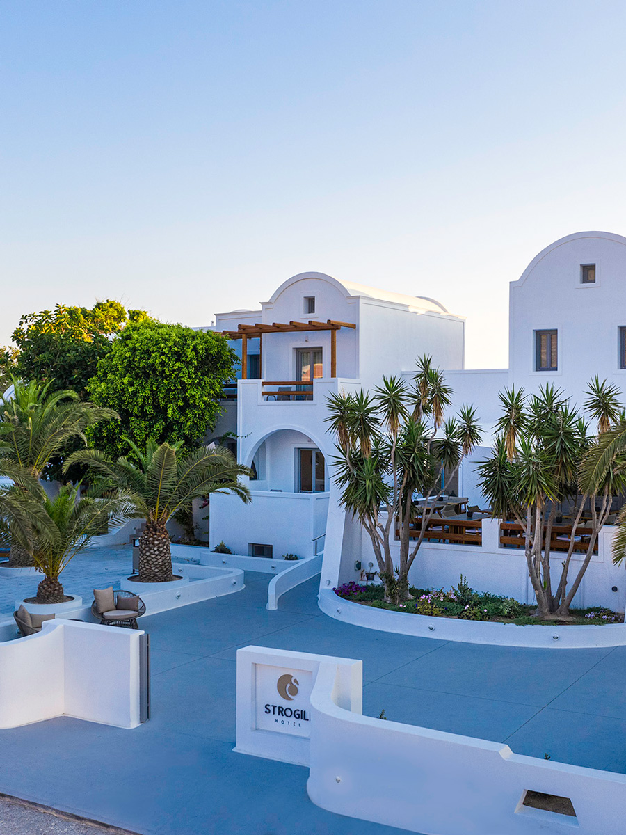 This four-star, adults only hotel, welcomes you in a place that combines local architecture with simplicity and elegance. Perfectly located near the cosmopolitan black sandy beach of Kamari that lies just a few steps away, Strogili Hotel offers you 40 minimal-chic rooms, ideal for all kind of travelers, as well as 2 stunningly beautiful outdoor swimming pools and a pool bar. The restaurant’s menu offers Greek and Mediterranean cuisine, with local ingredients and a modern approach.